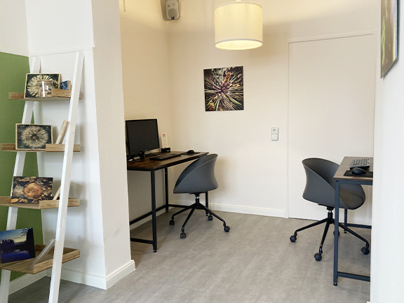 Arbeite in Ruhe im separaten Raum mit Bildschirm, Tastatur und Maus – und erhalte 10 % Rabatt auf Speisen. Erwerbe Deine 10er Karte für 60€.